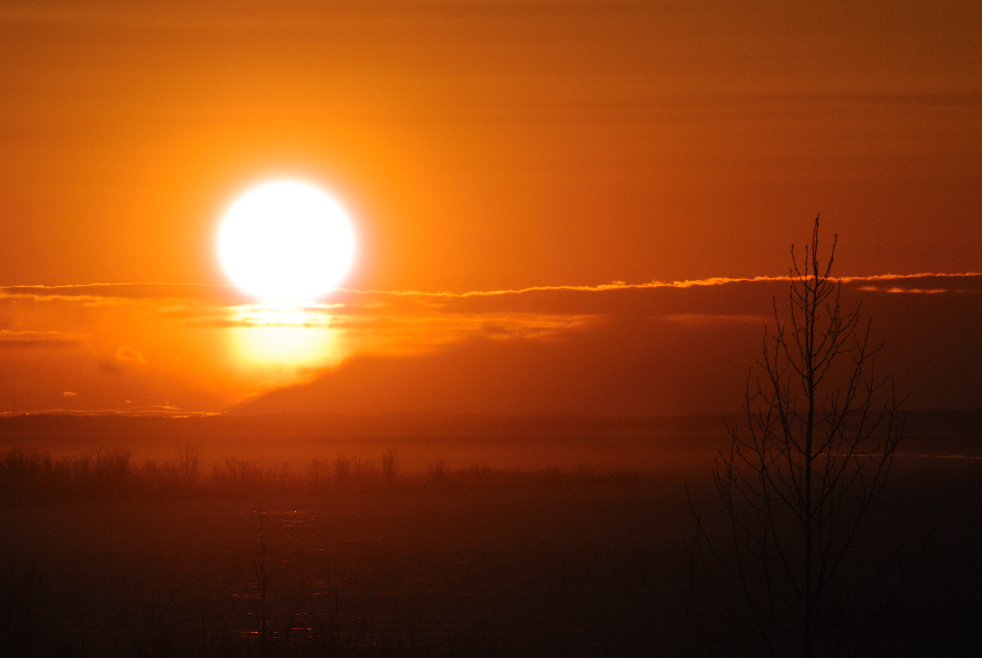 Sunset over a field, Reflections Lake, Mat-su Valley, Alaska