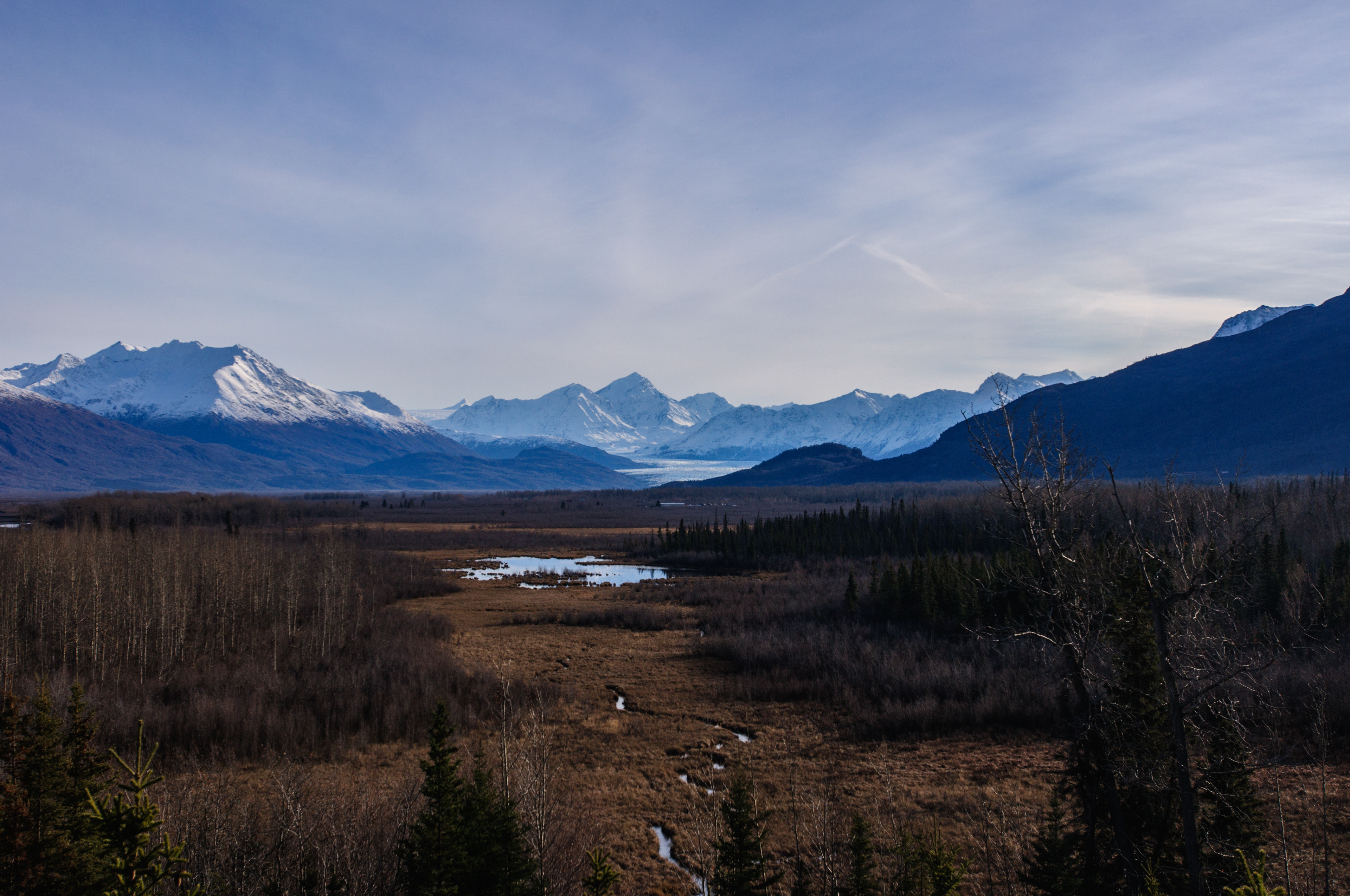 Mountain Peaks with alpenglow, Mat-su Valley, Alaska